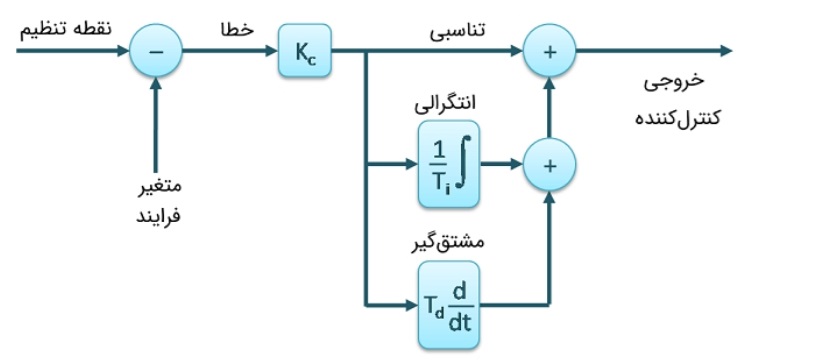 ۷- کنترل کننده های تناسبی مشتق گیر انتگرال گیر کنترل کنندههای تناسبی مشتق گیر انتگرال گیر PID، یکی از پرکاربردترین کنترل کننده های صنعتی می باشند که می توانند سه عمل کنترل کننده تناسبی، انتگرال گیر و مشتق گیر با هم روی سیگنال ها انجام دهند.